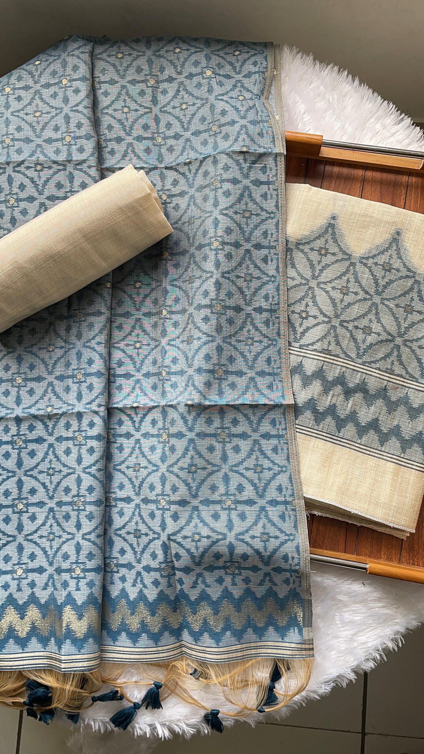 Grace woven in threads — Discover the beauty of tradition with this Jamdani Bird Chanderi Suit Set from Krishangi by Megha.