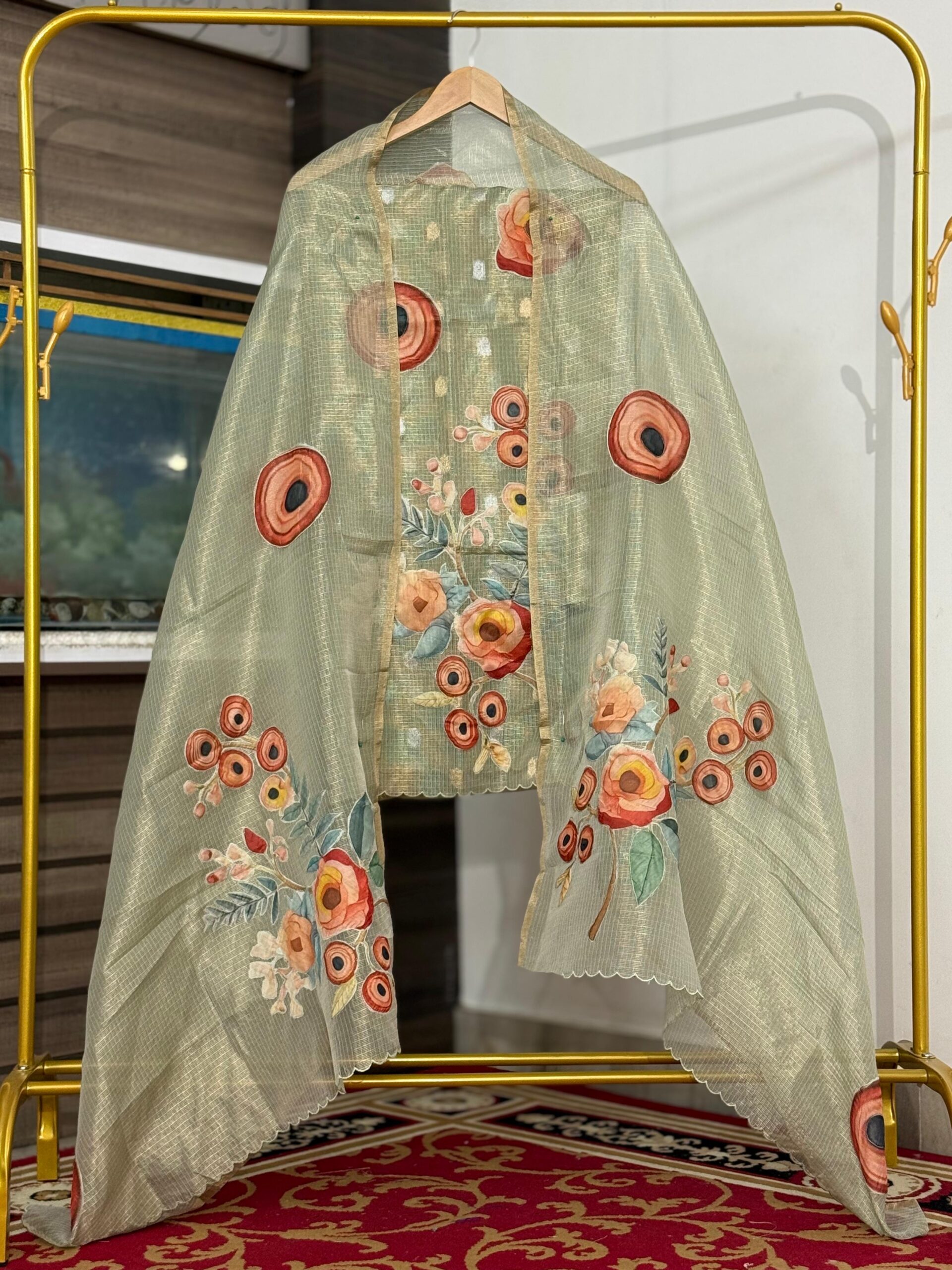 A stunning Tissue Appliqué Work Dupatta, adding elegance and finesse