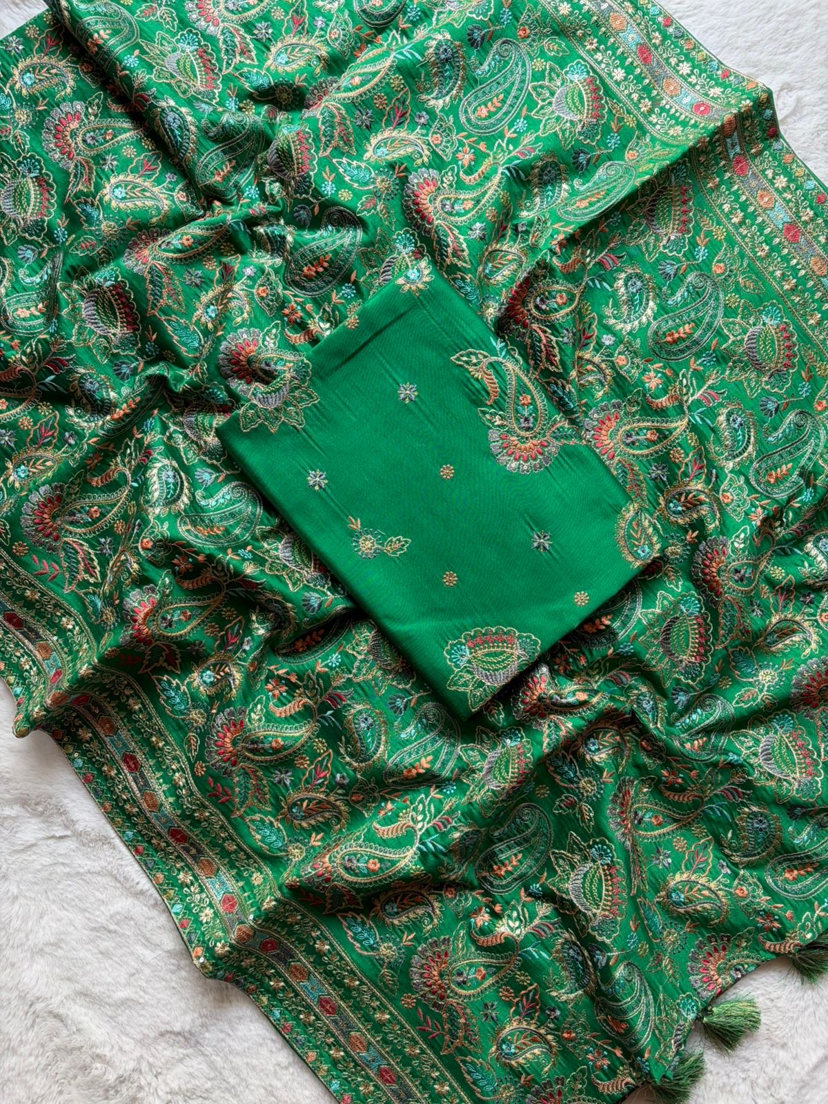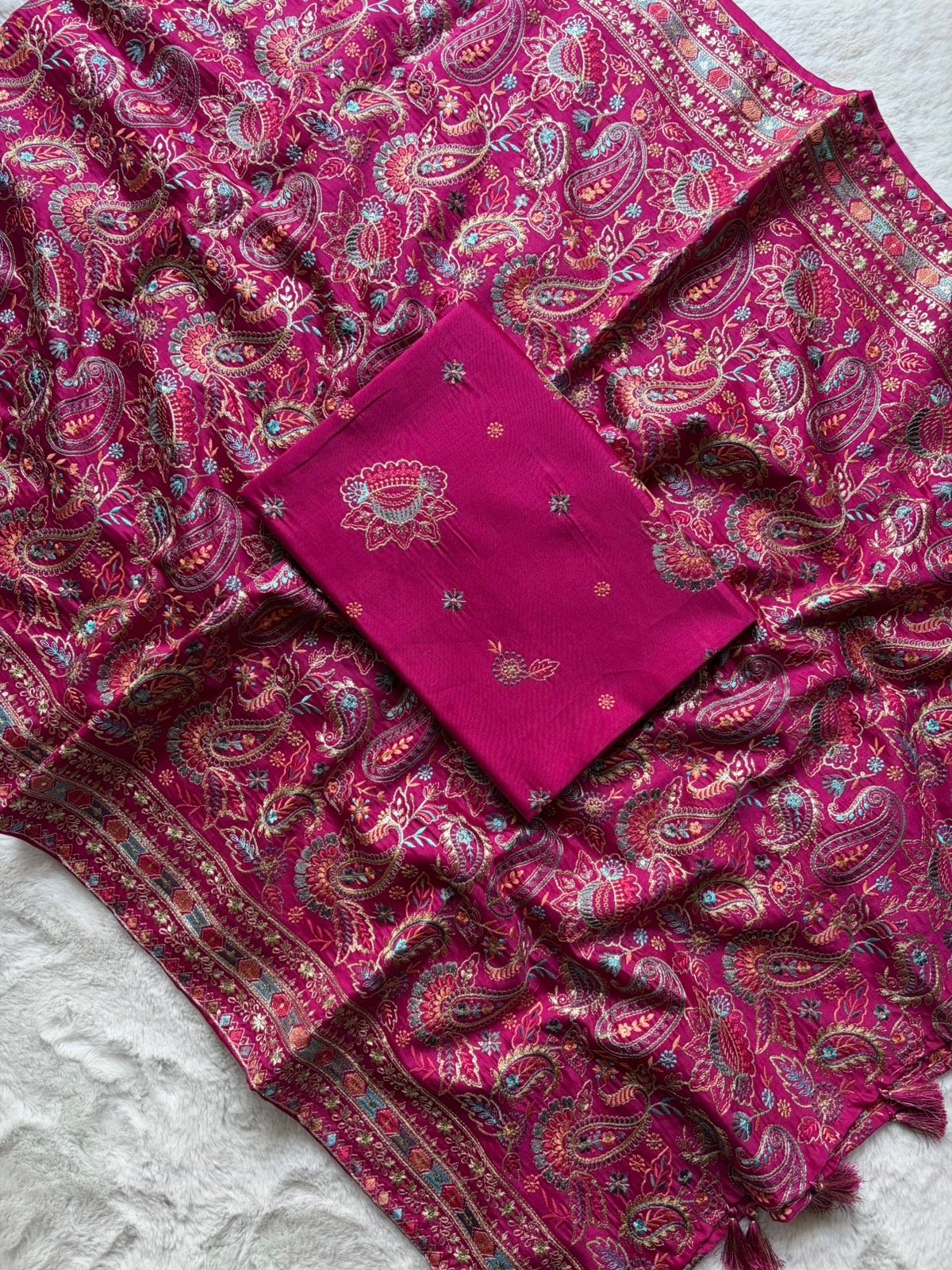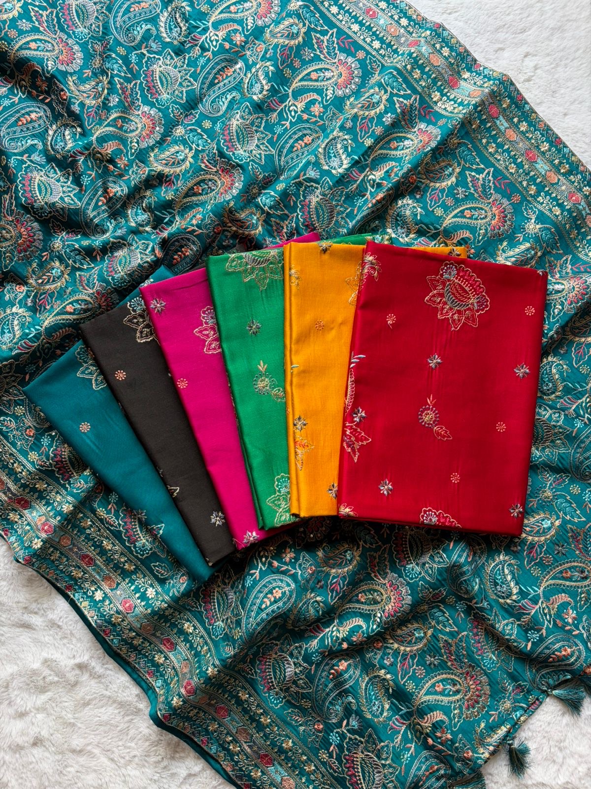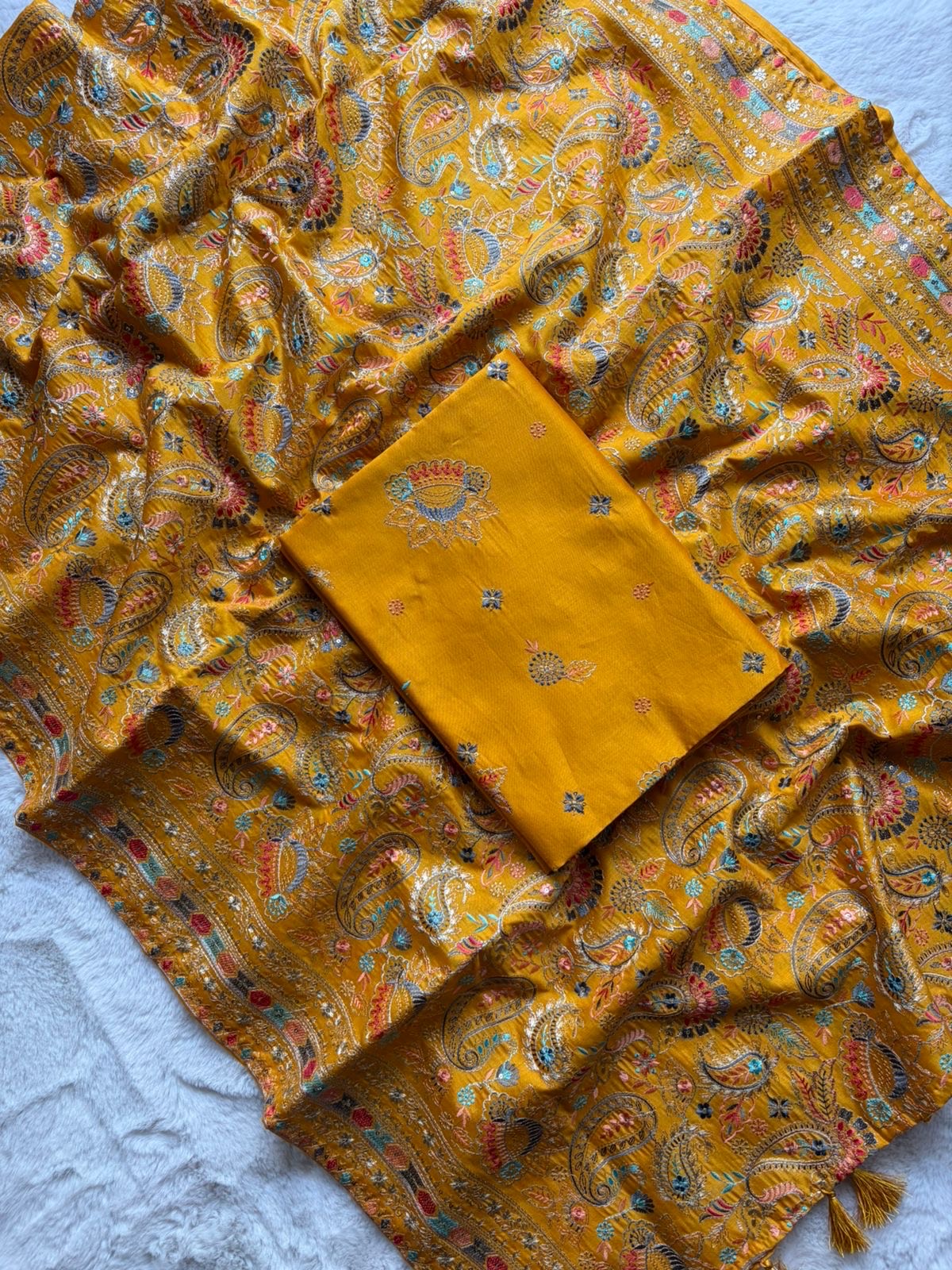 ✨ Top: Pure Silk Chanderi fabric adorned with rich, heavy multicoloured embroidery (2.5 metres)