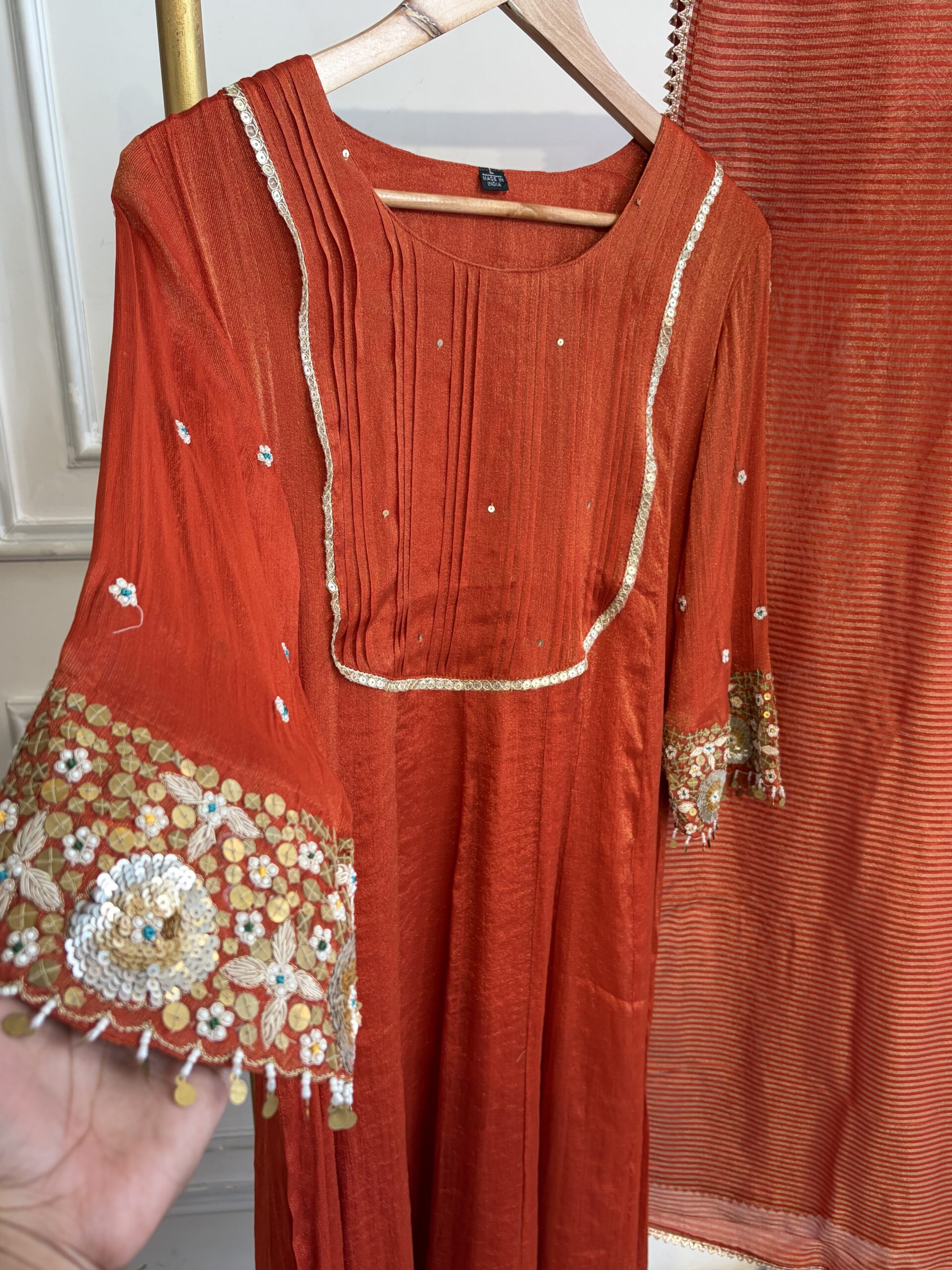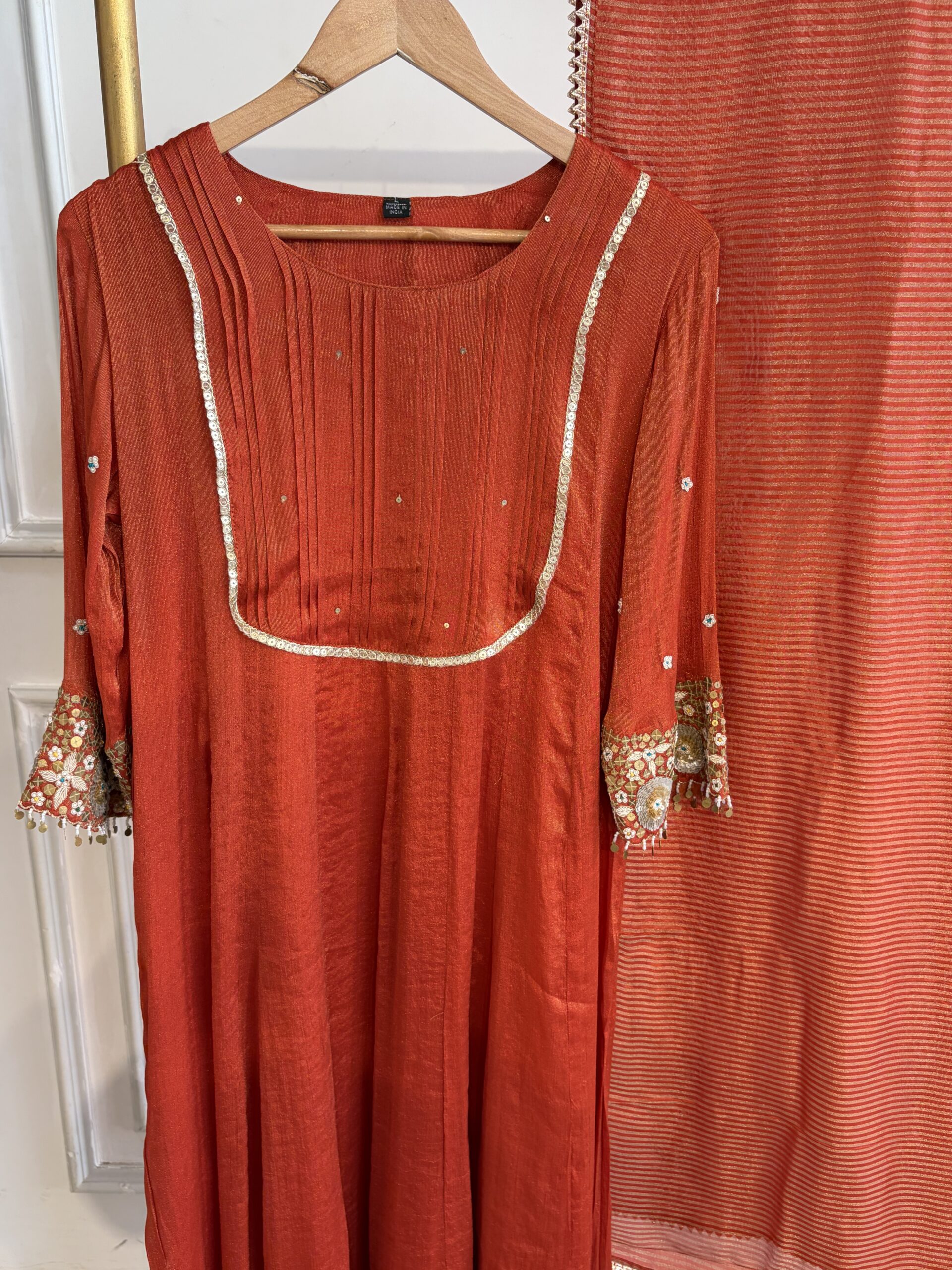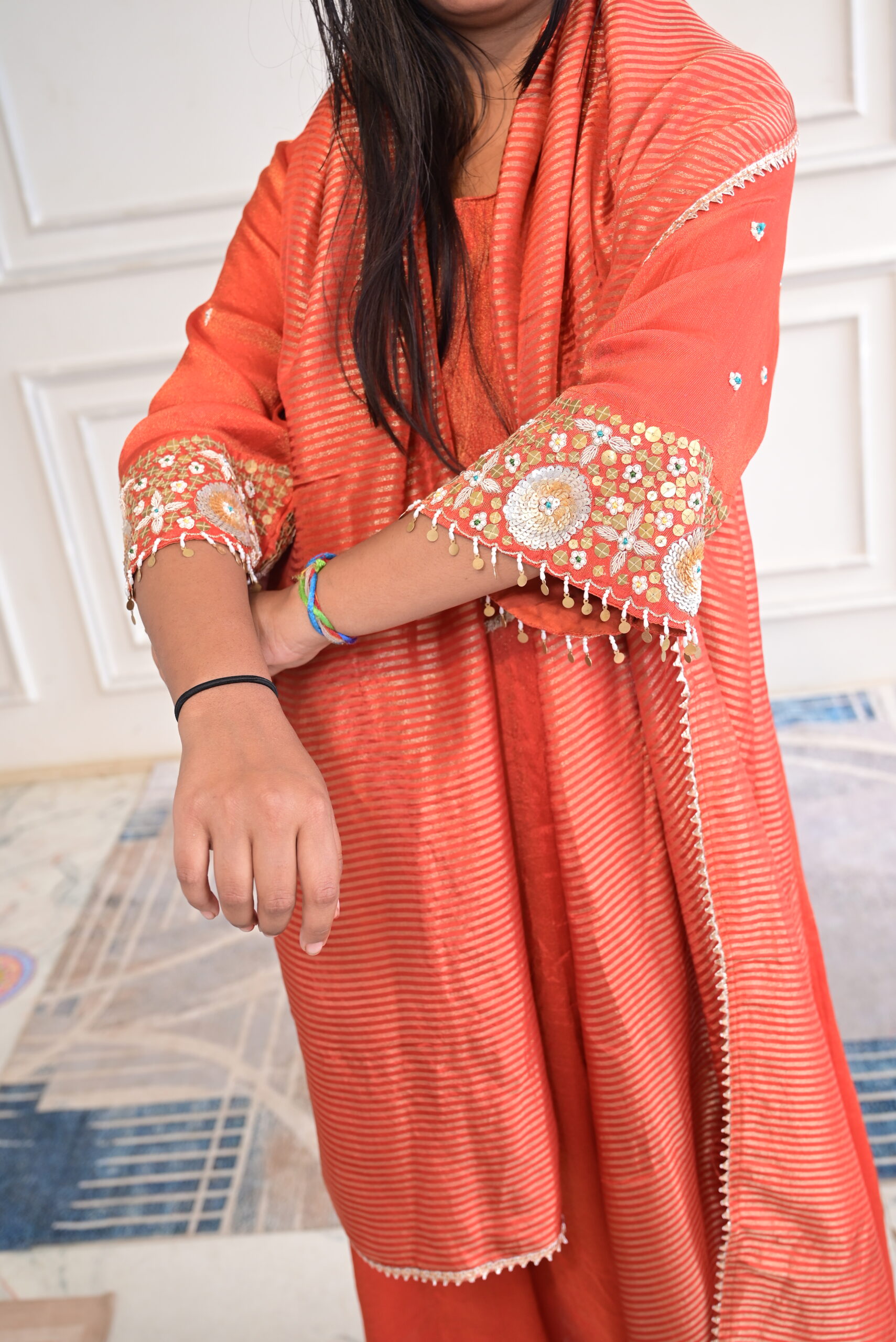Add a touch of shimmer and sophistication to your festive wardrobe with this Premium Crush Tissue Suit Set, crafted with rich fabric and statement embellishments.