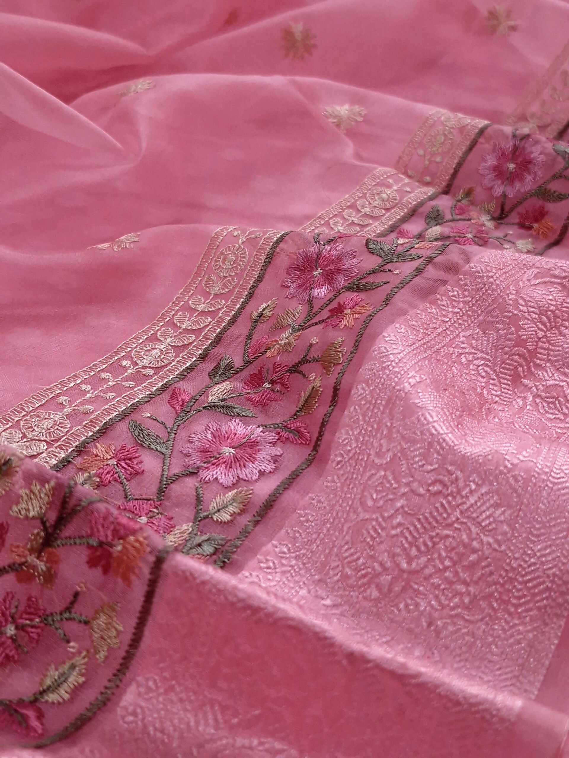 * Dupatta: Banarasi Organza with Cotton Border Weave & Embroidery – *2.5 metres*