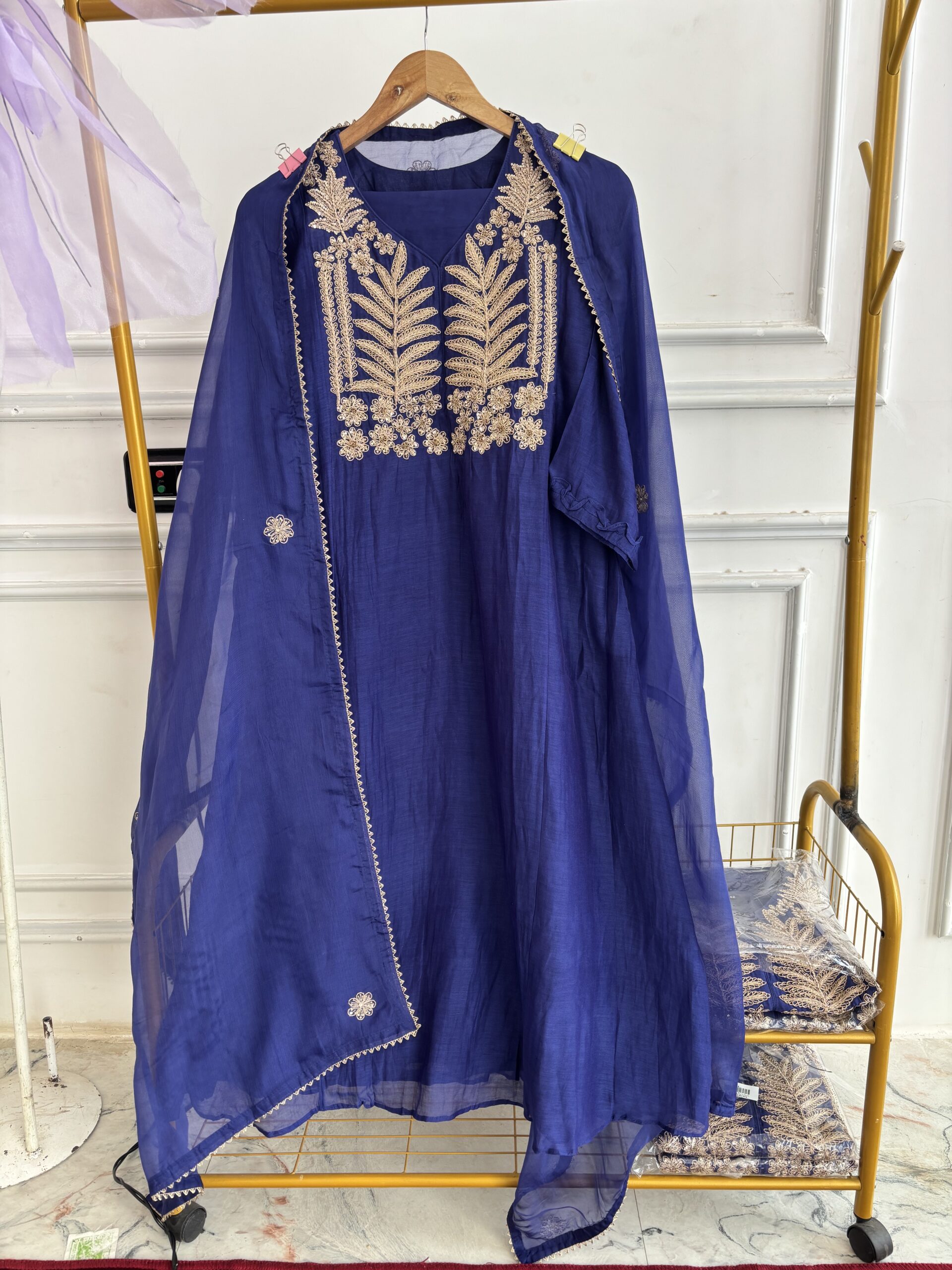 Perfect for festive gatherings, celebrations, or elegant day events, this stitched suit set blends traditional artistry with contemporary finesse.