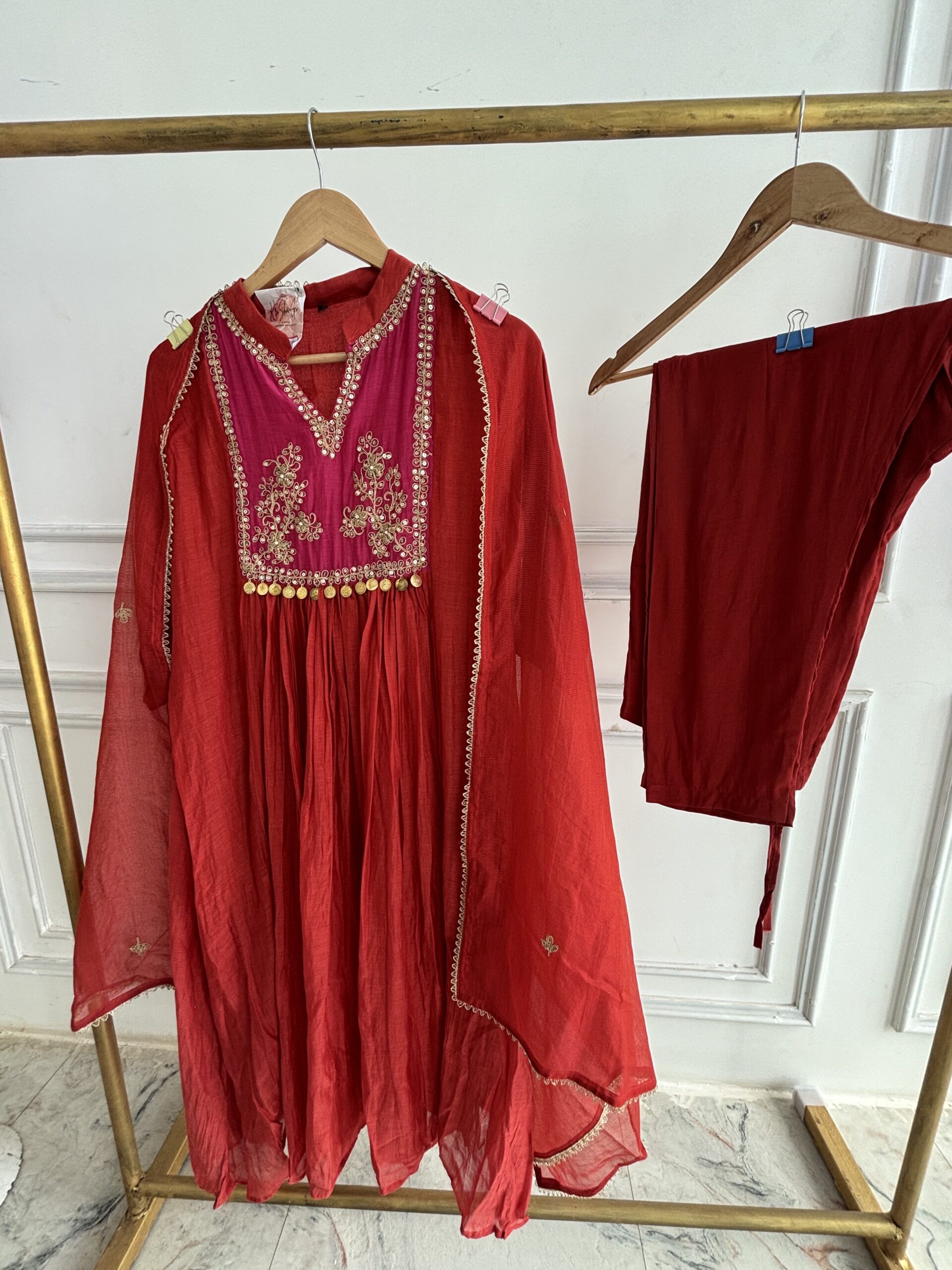 Be the first to review “Pure Mul Chanderi Suit with Dabka & Coin Work and Dupatta with Booti”