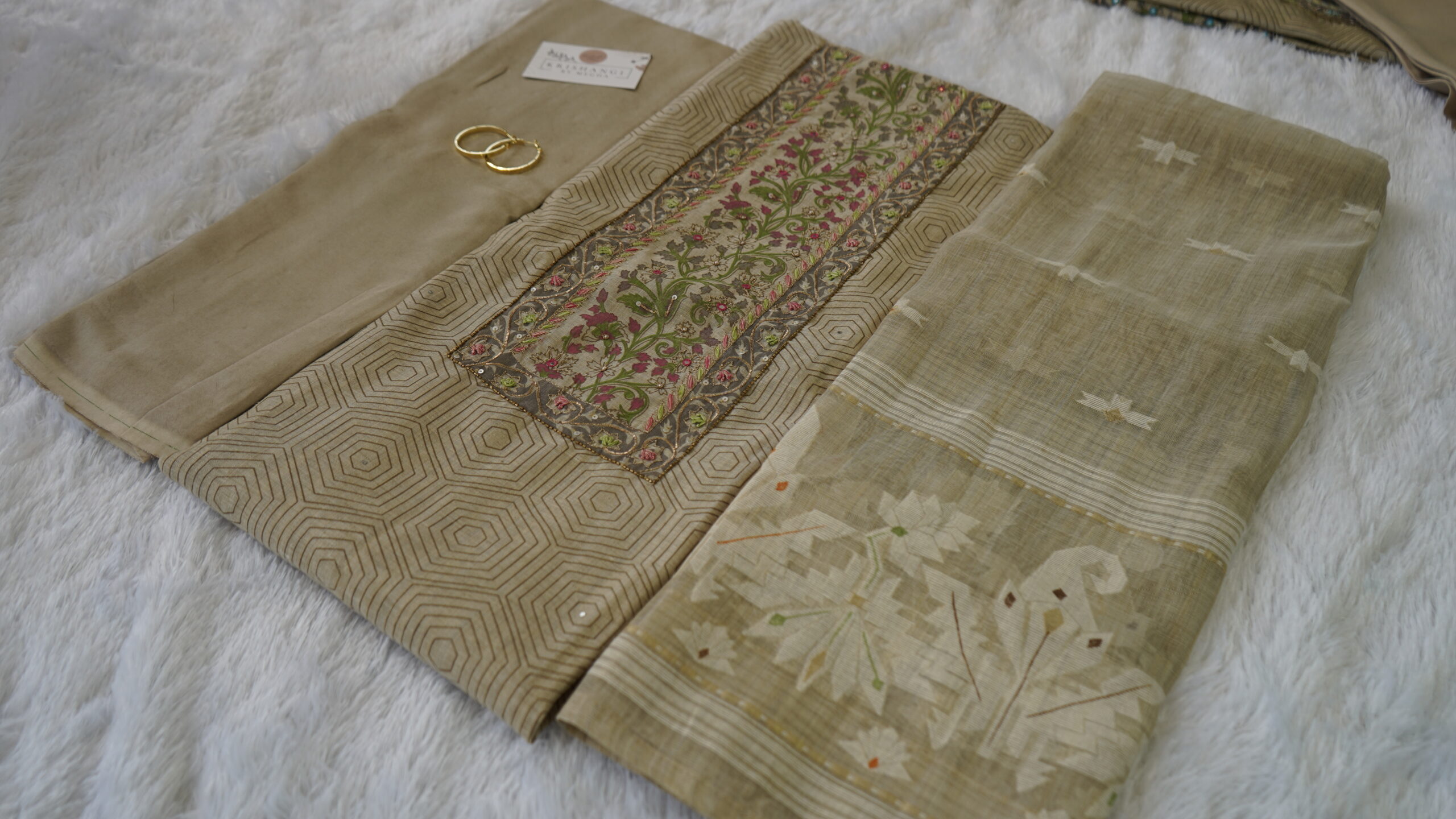 Whether you’re looking to create an everyday wear ensemble or a statement piece for a special event, this Unstitched Cotton Blend Salwar Suit Material with embroidered accents will surely make you stand out with its unique blend of tradition and contemporary style.