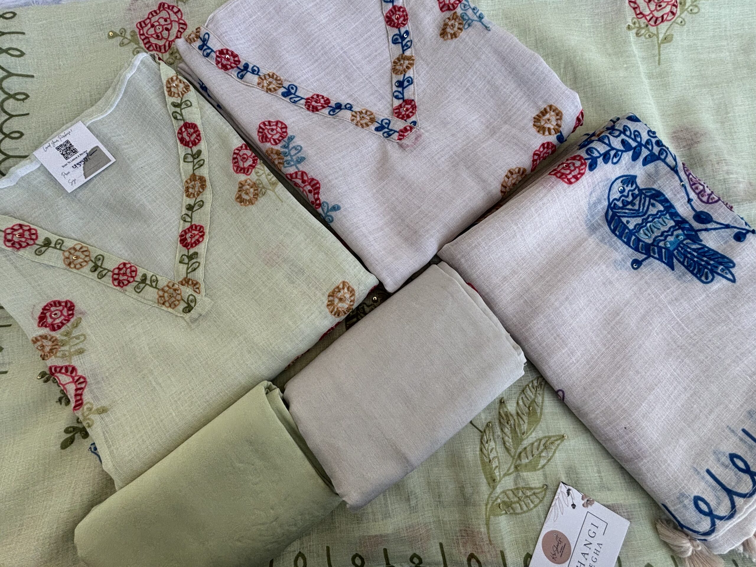 Unstitched pure linen Salwar Suit Material – Embroidered Elegance